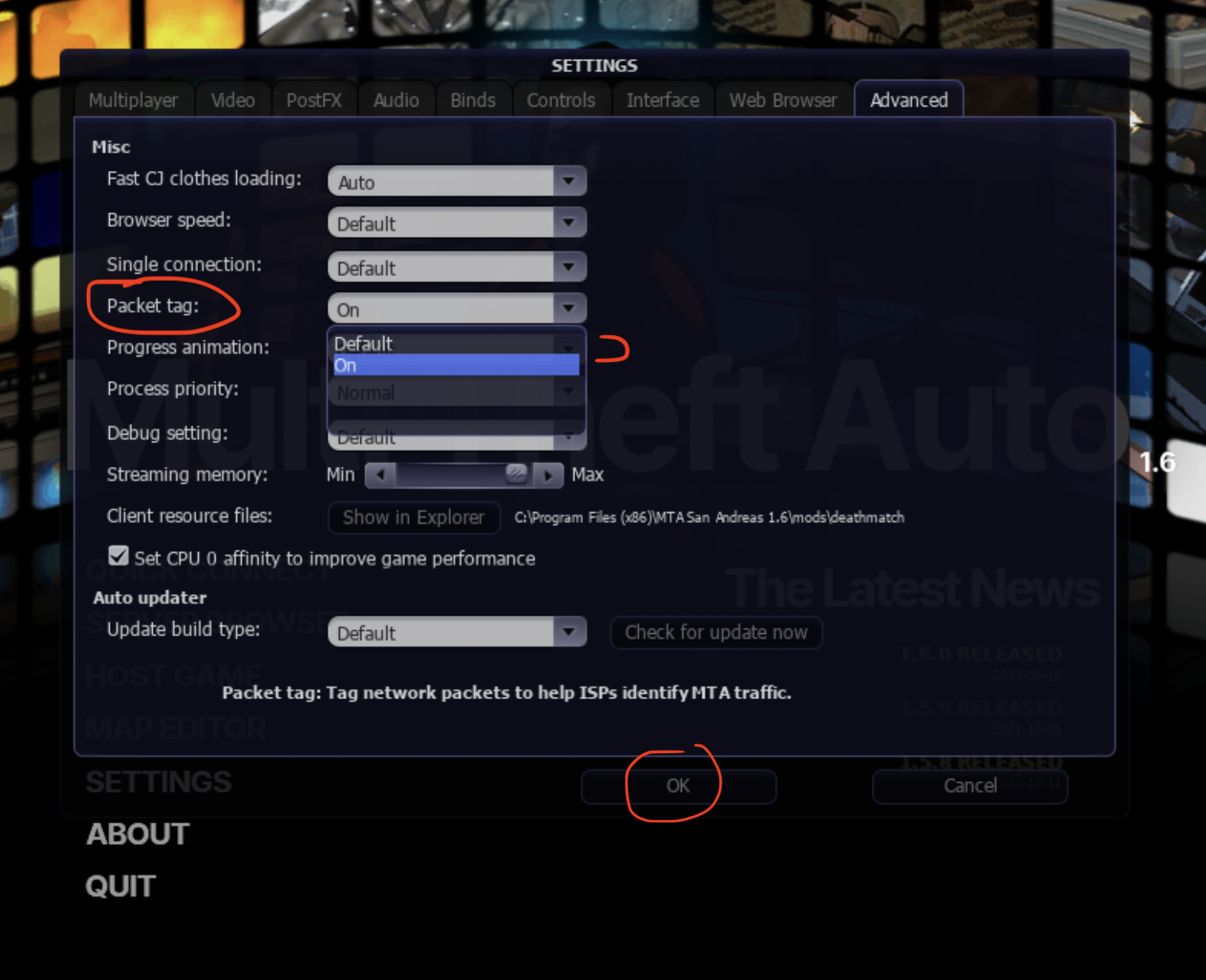 If you have trouble joining the server and receive [Error CC23] or another error, try changing the Packet tag setting in your MTA:SA client settings from Default to On or vice versa.