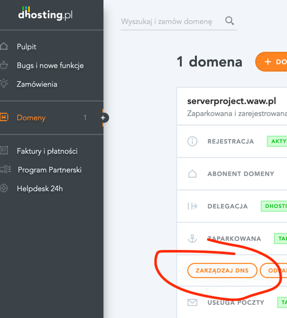 (tab domains -> enter the address you want -> SEARCH) or anywhere else. In our example,