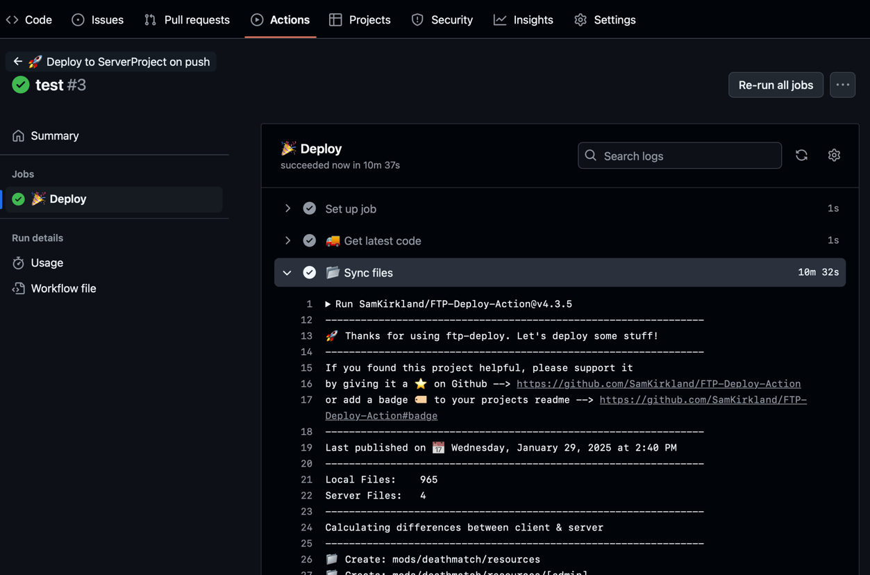 After uploading the file to the repository, a job should automatically start, uploading files from our repository to the server's FTP.