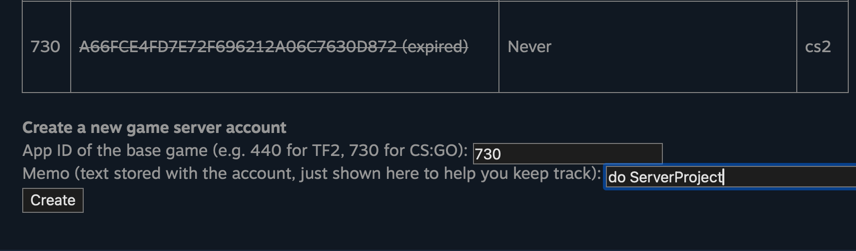 730for CS2, and Memo, to track your token by description (optional). Then click Create. Example below: