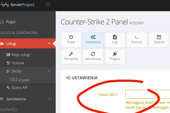 Go to the server settings in the ServerProject panel and enter the generated token in the field as shown in the screenshot below.