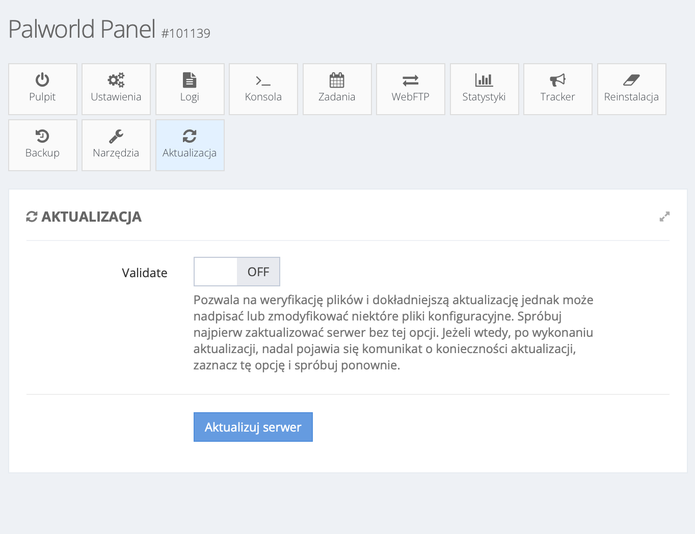 You will perform the update in the panel by going to the Update tab. It should not affect your world/game progress save, however we recommend downloading a server backup before this operation.